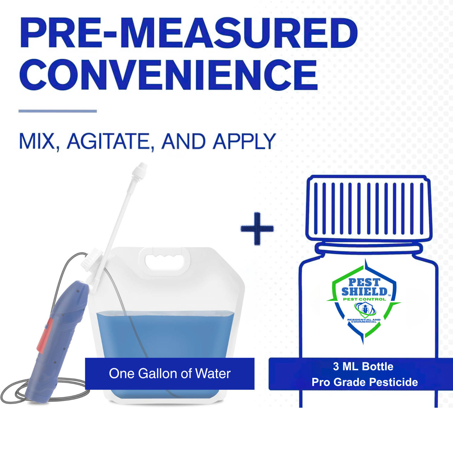 Pest Shield uses Pro Grade Treatment Solution. Our treatment solution is the same products that the professional pest control companies use.